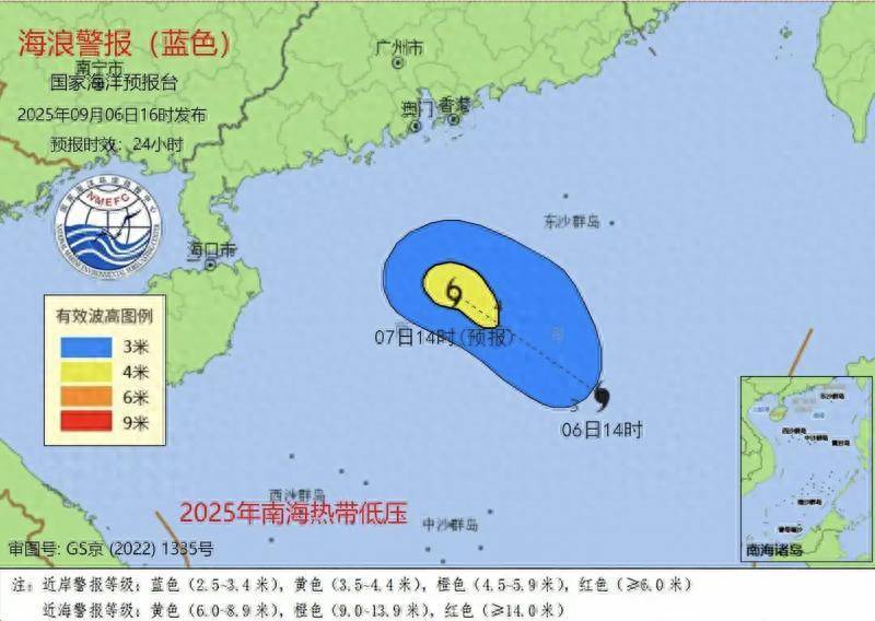 记者从自然资源部获悉,受南海热带低压的影响,预计9月6日夜间到7日下午: