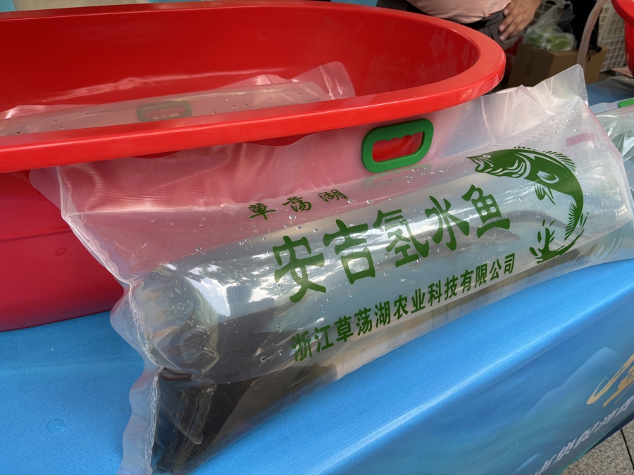 隔壁展位上,一群安吉氢水鱼在透明水袋里欢快游动。“安吉的石斑鱼口感鲜美,肉质紧实,是当地一道特色美食。”浙江草荡湖农业科技有限公司董事长潘国良告诉新民晚报记者,这些石斑鱼在今天凌晨3点捕捞,充入氧气和氢气后打包在水袋中,一路冷链运到上海,6点半就来到了展位,至今仍是鲜活的。“我们带来了80多袋石斑鱼和鲈鱼,几乎都卖光了,现在剩下的两三袋是展示品,明天继续补货。”