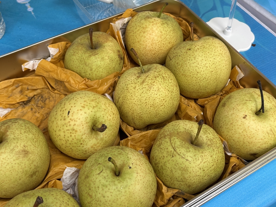吃一口就爆汁的安吉翠玉梨是清凉解暑的佳品,展位上的大姐说,基地的梨是绿色种植,豆腐渣发酵后作为肥料,不用农药化肥,不打除草剂,不抹膨大剂,在树上自然成熟的。“除了翠玉梨,我们这次还带来了一个尚未命名的新品种,这是我们和农科院合作种植的。它的肉质更加细腻,水分足,化渣性好,带给上海市民尝尝鲜。”