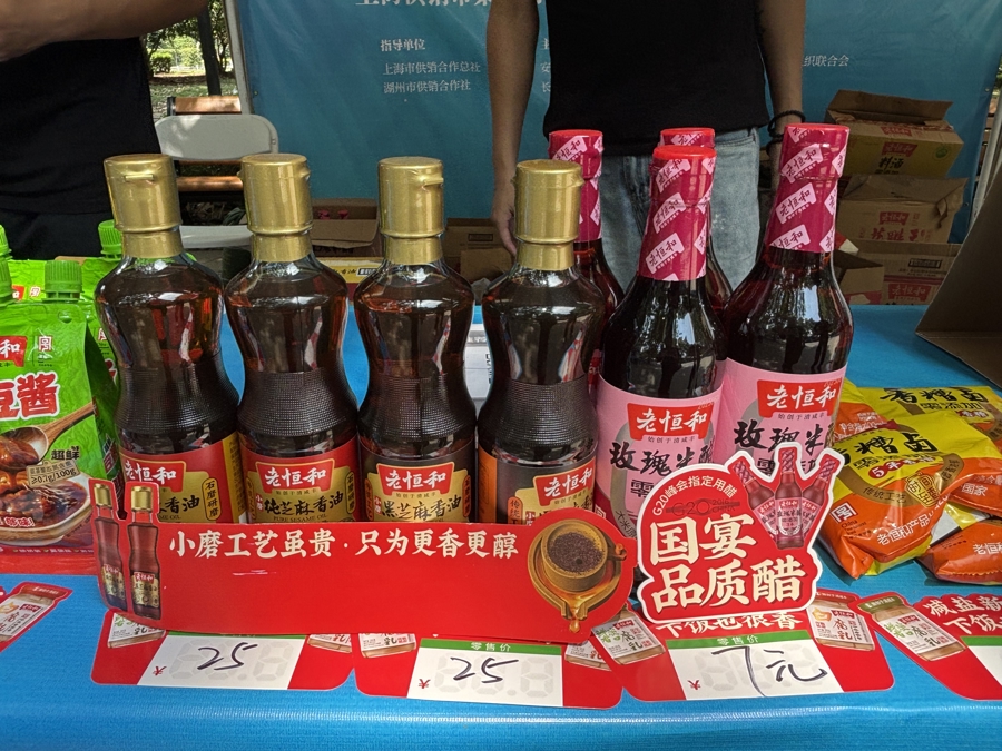湖州市吴兴区供销社则带来了百年老字号老恒和的玫瑰米醋、香糟卤、料酒、芝麻油等产品。“刚刚有位爷叔说,他要回家拿小拖车,再来我们展位买东西。”工作人员告诉新民晚报记者,老恒和创始于清咸丰年间,至今坚持古法酿造工艺,以国宴用醋玫瑰米醋为例,选用太湖优质大米,通过传统技艺使其天然发酵,入口酸中带甜,色泽宛如玫瑰。